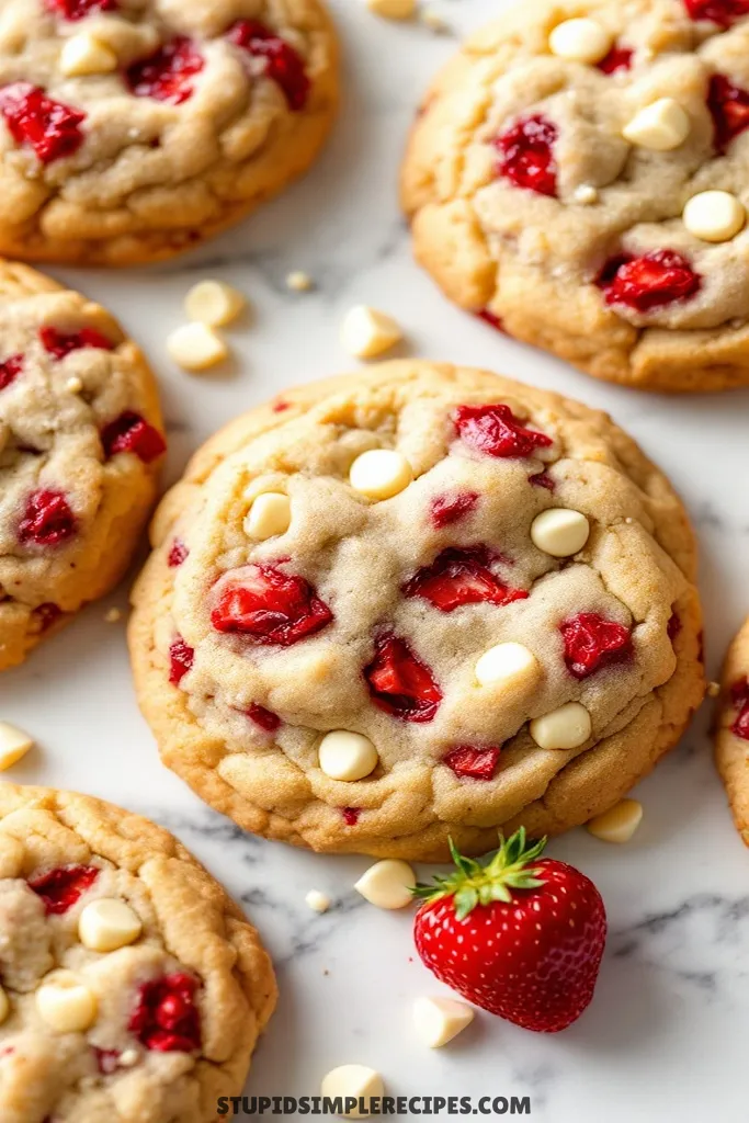 White chocolate chips complement the strawberries perfectly – they’re sweet but not overpowering. The cookies stay soft in the middle with slightly crisp edges.