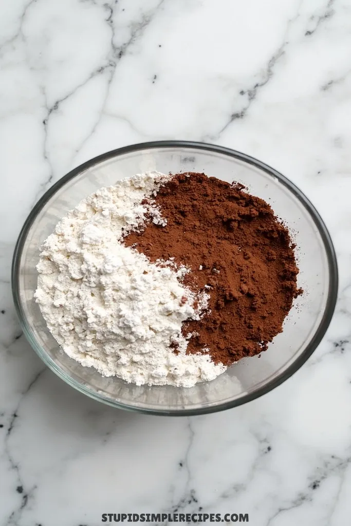 2. While the butter’s softening, mix your dry ingredients. Whisk together the flour, cocoa powder, baking soda, and salt in a medium bowl. This gets rid of any cocoa powder lumps and ensures the baking soda is evenly distributed.
