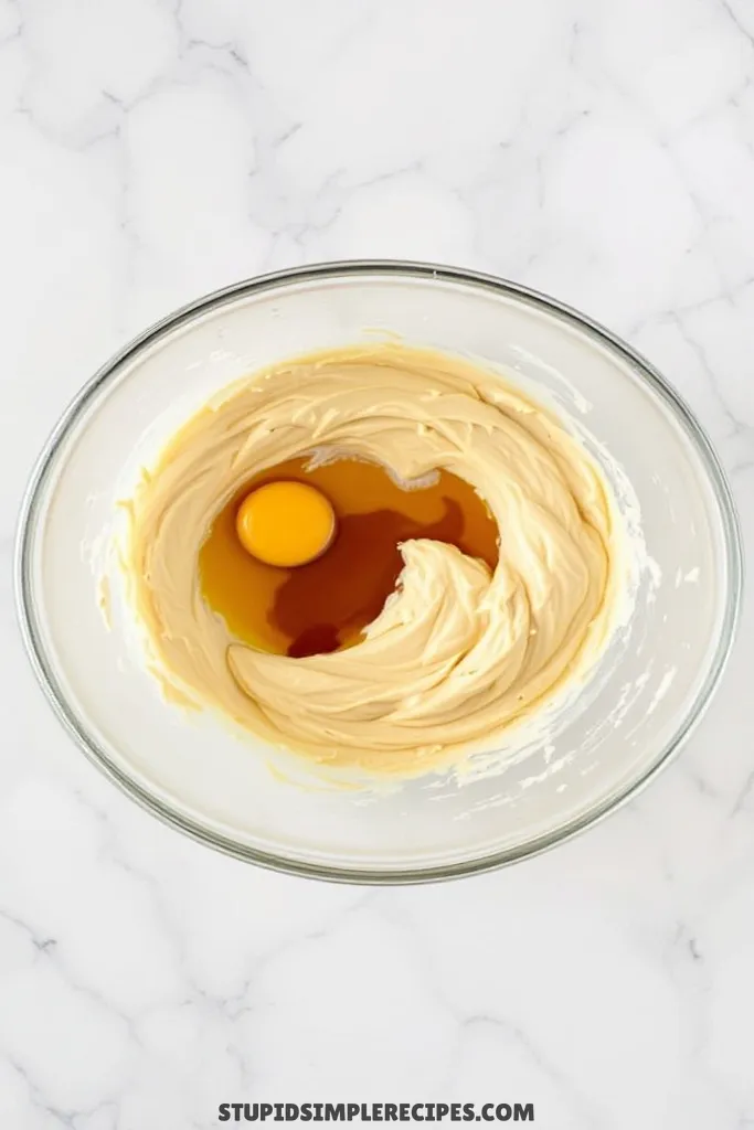- Add vanilla, then beat in the eggs one at a time. Let each egg mix in completely before adding the next one. The batter should look smooth and glossy.