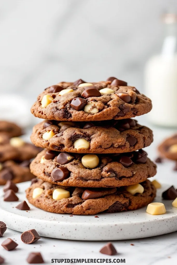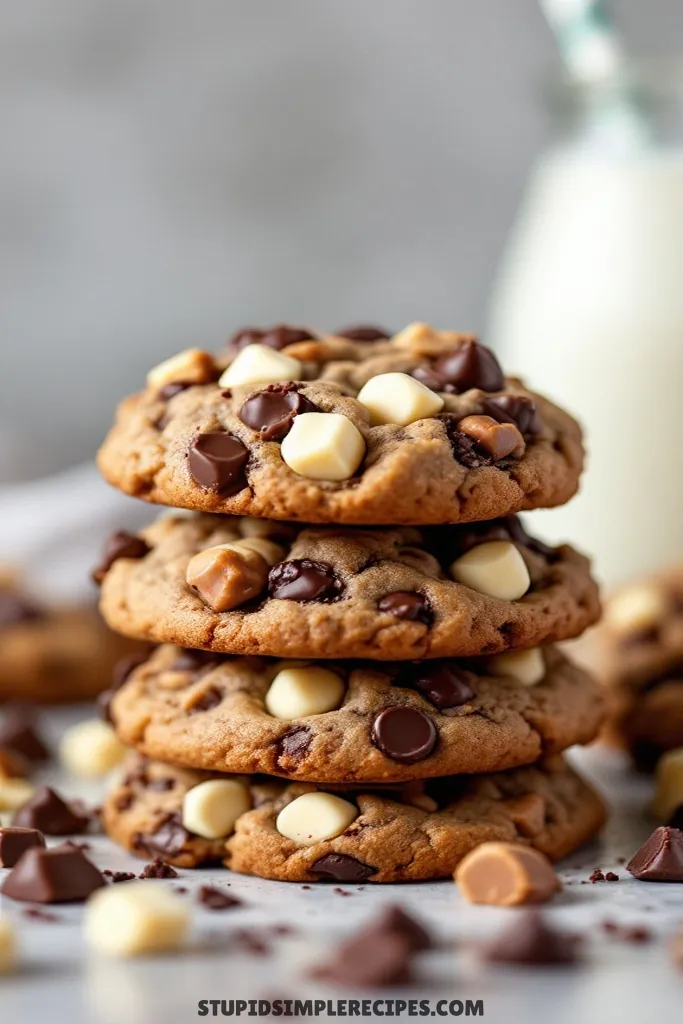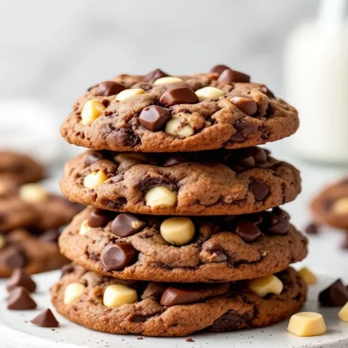 These triple chocolate chunk cookies are exactly what you want when a serious chocolate craving hits. I’ve found that using three different types of chocolate – dark, milk, and white chunks – gives you a more interesting cookie than just one kind. The dark chocolate adds depth, while the milk and white chocolate bring sweetness and creaminess. They stay soft in the middle for days (if they last that long) but get nicely crisp around the edges.